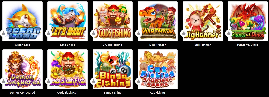 Monkey King Fishing, Bao Chuan Fishing, Fierce Fishing, Fa Chai Fishing, Starhunter.